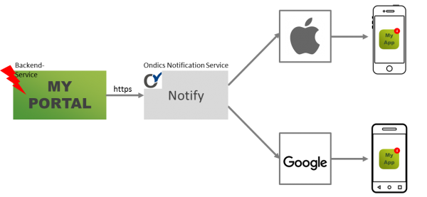 Der Ondice Notification Service Notify macht es dem App-Entwickler leicht, Notfications in der App zu verwenden und Notifications zu verschicken.