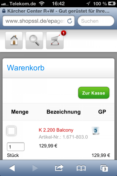 Der Webshop soll auch für Mobilgeräte optimiert sein, so dass Bestellungen auch von unterwegs erfolgen können, z.B. eine Reinigungsmittel-Nachschub-Bestellung direkt aus der Werkstatt.