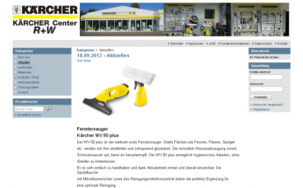Erstellung eines Webshops für PC und mobile Phones mit dem kompletten Sortiment der Alfred Kärcher Vertriebs-GmbH